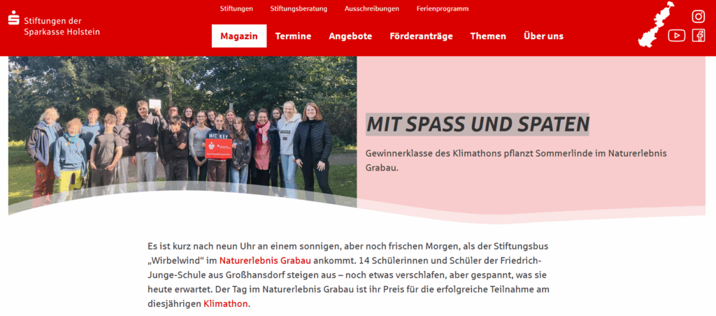 Darüber berichten die Stiftungen der Sparkasse Holstein in ihrem Beitrag „Mit Spaß und Spaten“.